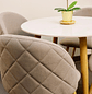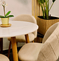Cree un espacio de comedor donde el diseño moderno se encuentra con la comodidad excepcional con nuestras Sillas Lino Oak y la Mesa de Comedor de Cuarzo Calacatta Soft. Disponibles en opciones cromáticas neutras, nuestras sillas en tonos crema o gris claro se adaptan a cualquier paleta de colores, mientras que la mesa, con opciones de cubierta de 80cm y 100cm de diámetro, se ajusta a la dimensión de su espacio.