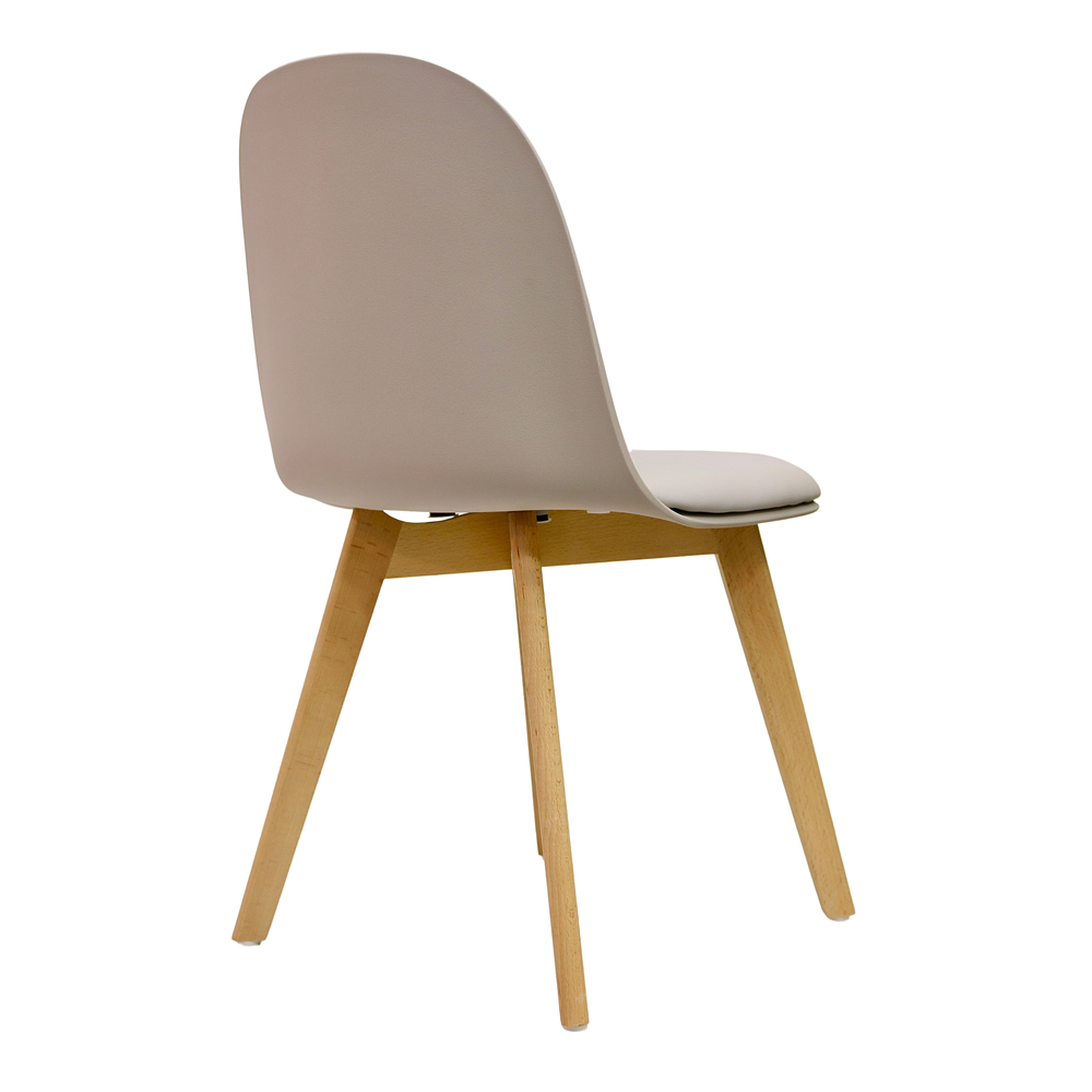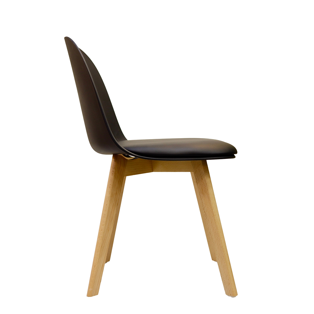 - Materiales: Asiento de Polipropileno y Colín de ecocuero relleno con espuma viscoealastica de alta densidad, con patas de madera de haya